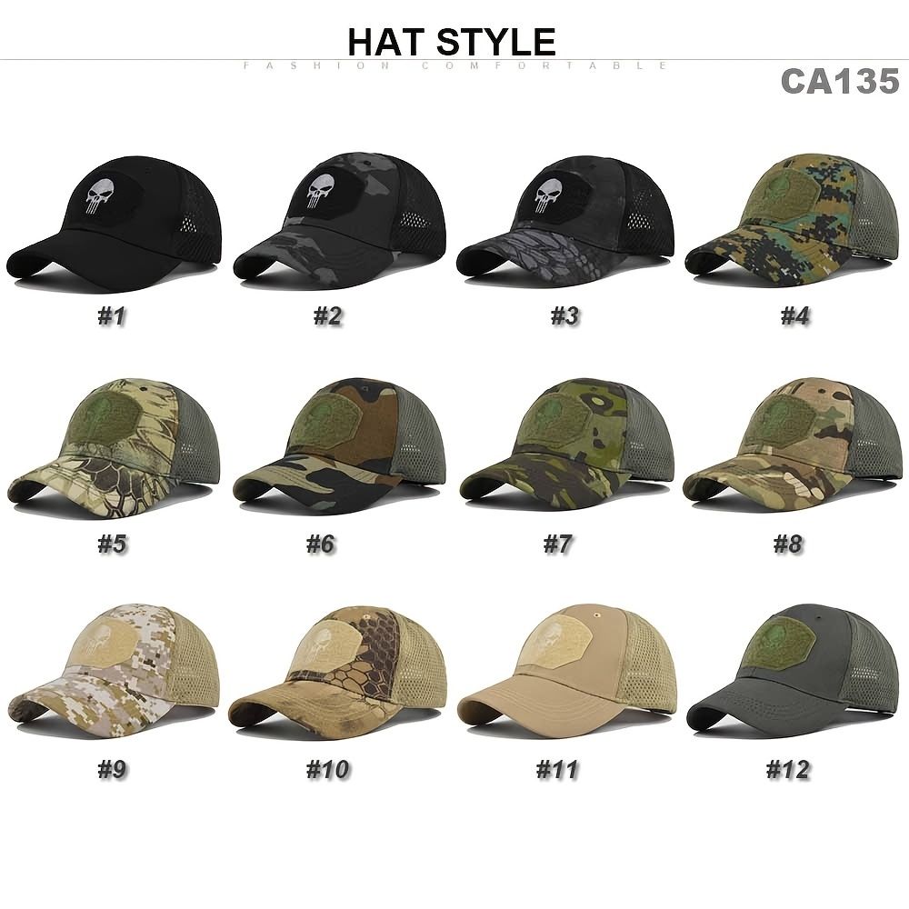 1pc Breathable Tactical Baseball Cap; Multi-color Mesh Sun Hat With Skull Pattern; For Outdoor Hunting And Hiking 1pc Breathable Tactical Baseball Cap; Multi-color Mesh Sun Hat With Skull Pattern; For Outdoor Hunting And Hiking 1pc Breathable Tactical Baseball Cap; Multi-color Mesh Sun Hat With Skull Pattern; For Outdoor Hunting And Hiking