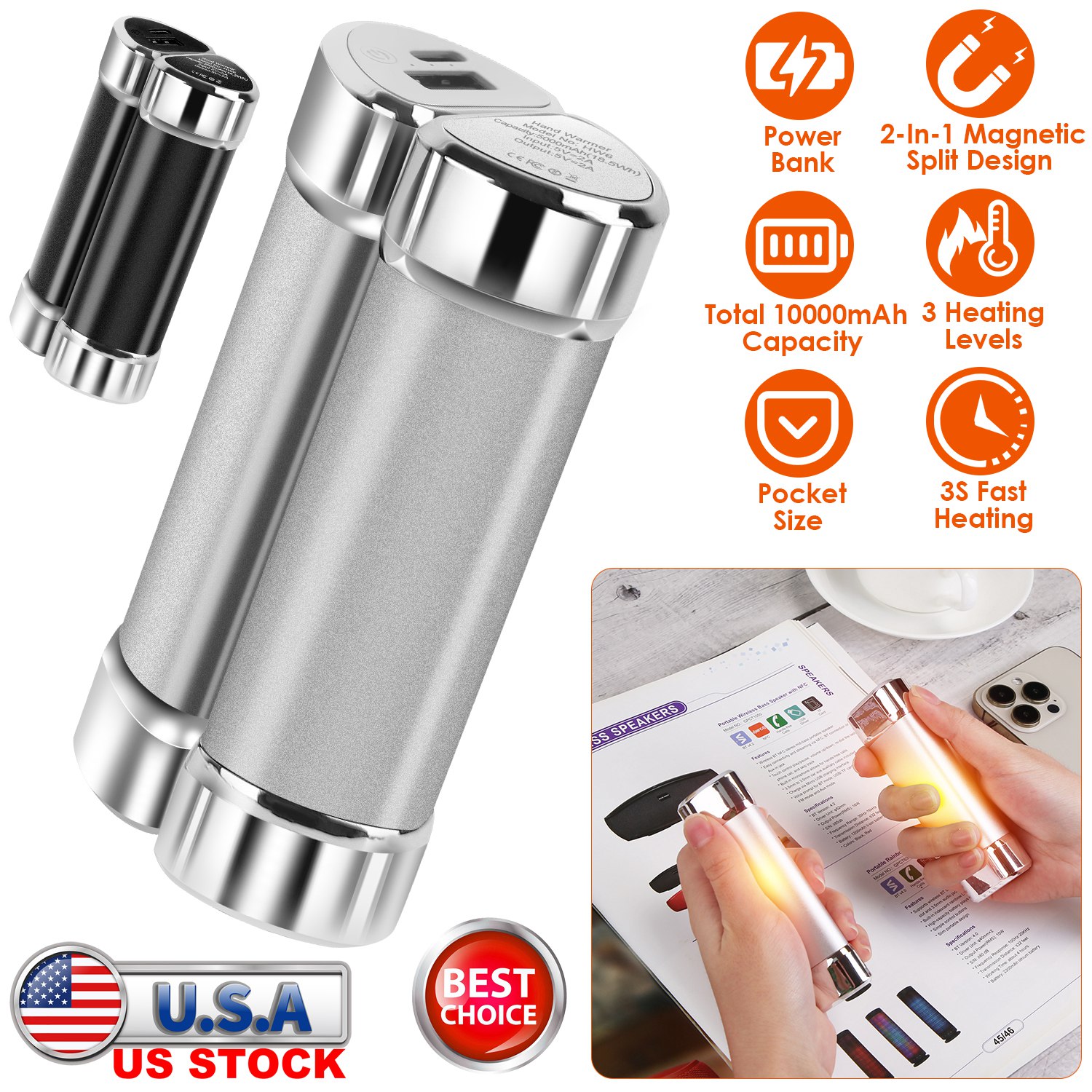 2 Packs 10000mAh Split-Magnetic Handwarmers 2 in 1 Portable Electric Pocket Heater Power Bank Portable Charger with 3 Heating Levels for Camping Hunt