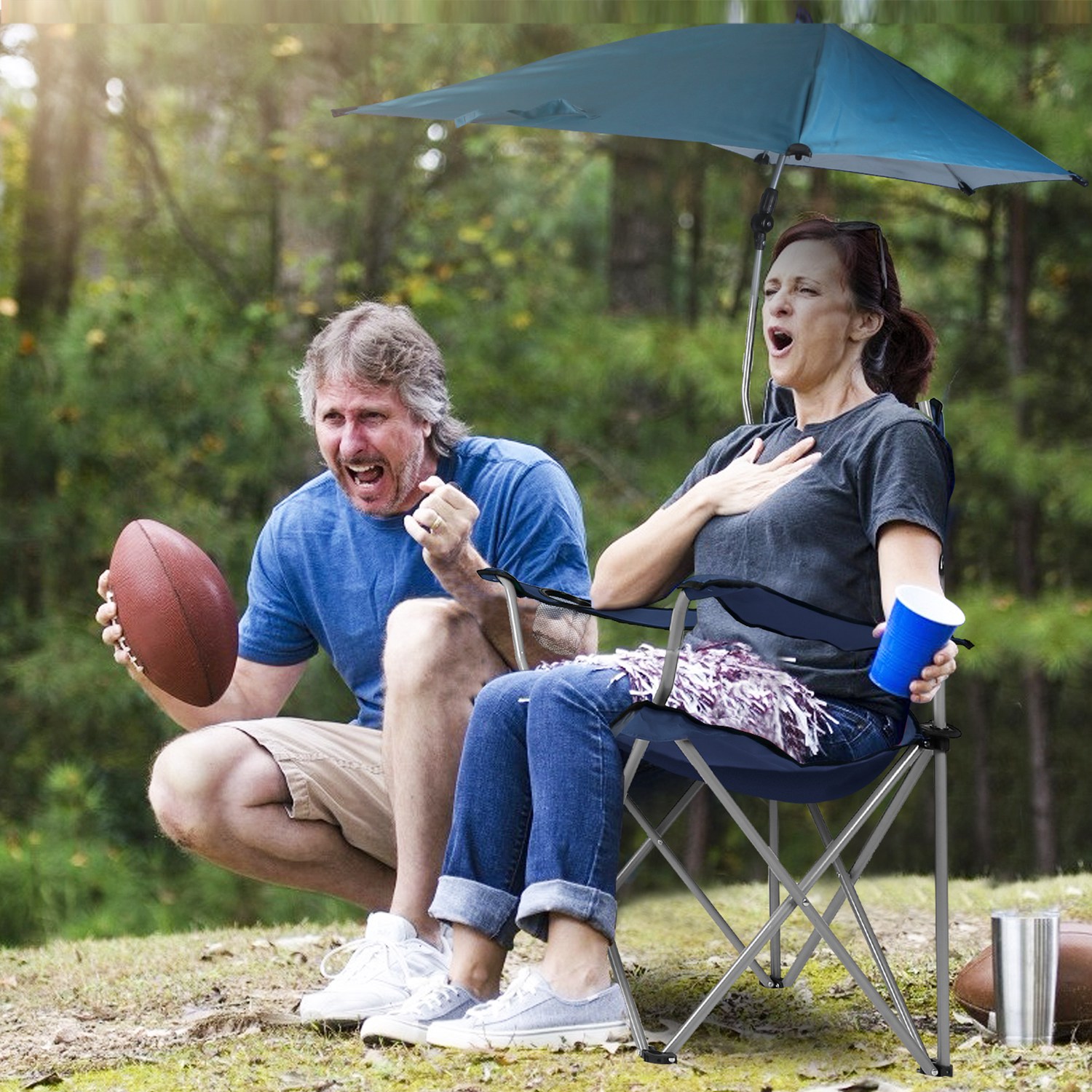 Come with an umbrella on the top, our foldable canopy chair is suitable for you to enjoy the shade and breeze at park, beach, pool, backyard, camp site or other outdoor places. Silver-coated Oxford fabric prevents strong UV and provides you with cool shade in a hot summer day. The heavy duty steel greatly improves its durability and reliability. This chair is particularly designed into foldable style, easy to store and carry. Set up quickly, can be opened and folded within seconds and packs easily back into its carry bag for storage or travel. Mesh cup holder keeps a beverage within reach. The included carry bag offers easy transport and storage.